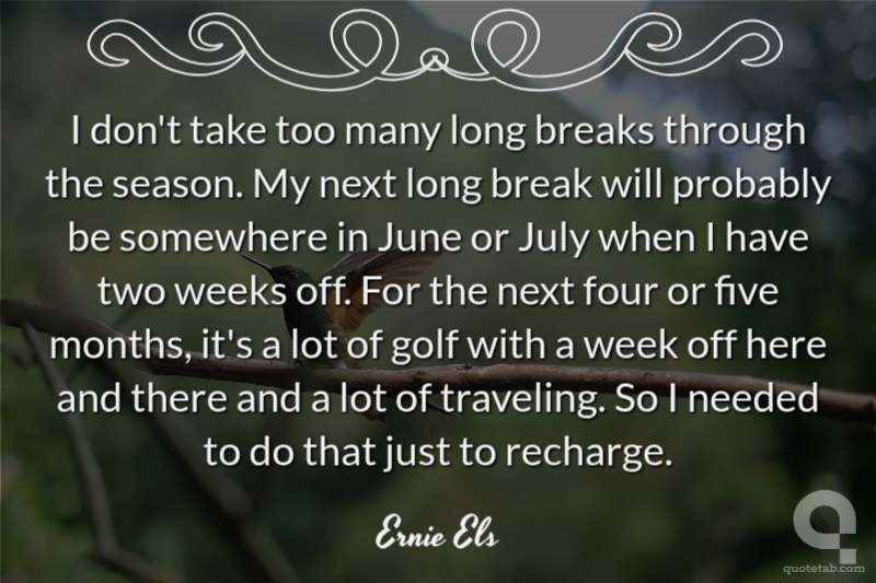 I don't take too many long breaks through the season. My next long break will probably be somewhere in June or July when I have two weeks off. For the next four or five months, it's a lot of golf with a week off here and there and a lot of traveling. So I needed to do that just to recharge.