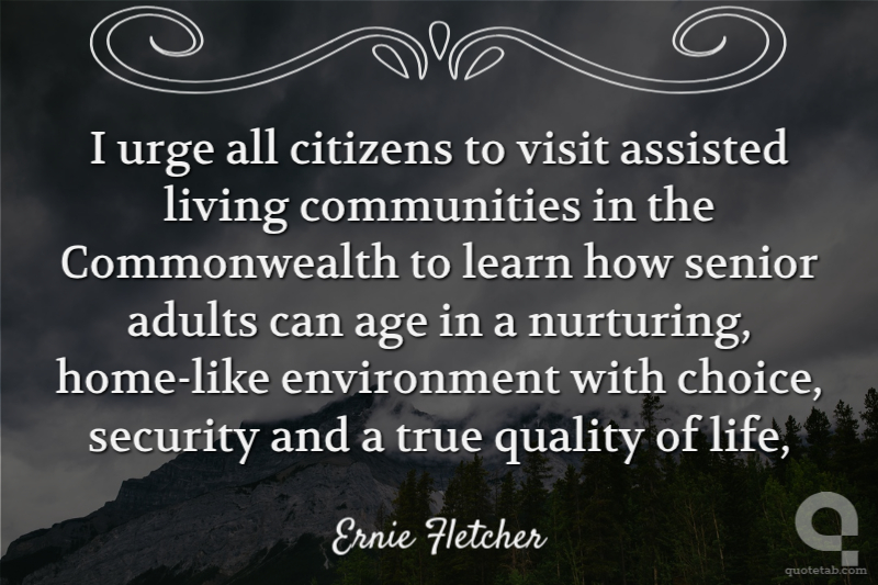 I urge all citizens to visit assisted living communities in the Commonwealth to learn how senior adults can age in a nurturing, home-like environment with choice, security and a true quality of life,
