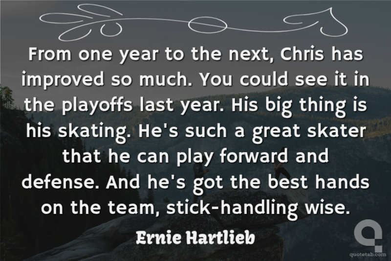 From one year to the next, Chris has improved so much. You could see it in the playoffs last year. His big thing is his skating. He's such a great skater that he can play forward and defense. And he's got the best hands on the team, stick-handling wise.