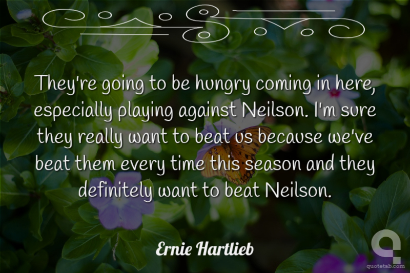 They're going to be hungry coming in here, especially playing against Neilson. I'm sure they really want to beat us because we've beat them every time this season and they definitely want to beat Neilson.