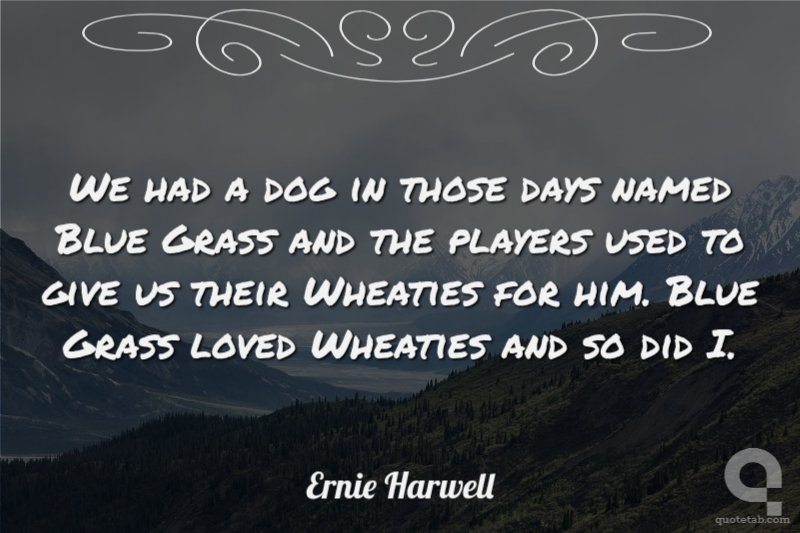 We had a dog in those days named Blue Grass and the players used to give us their Wheaties for him. Blue Grass loved Wheaties and so did I.