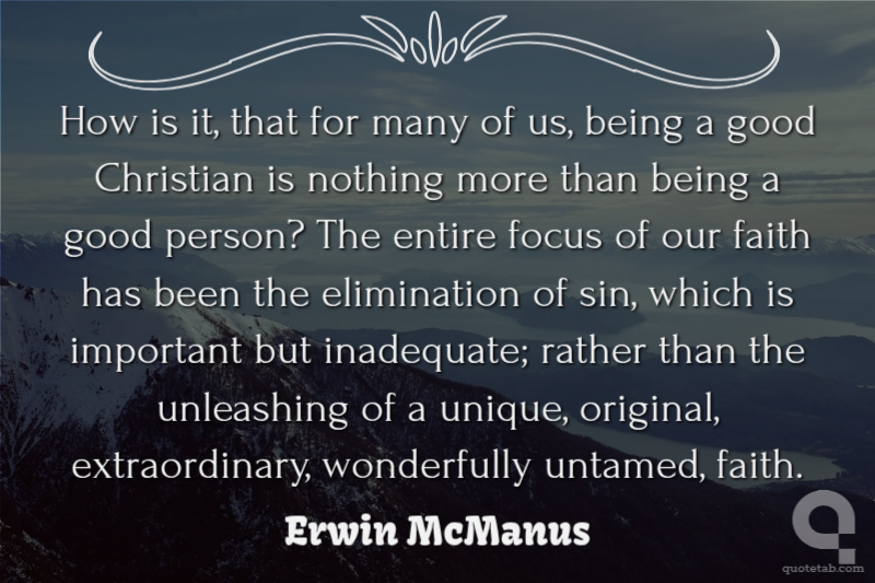 How is it, that for many of us, being a good Christian is nothing more than being a good person? The entire focus of our faith has been the elimination of sin, which is important but inadequate; rather than the unleashing of a unique, original, extraordinary, wonderfully untamed, faith.