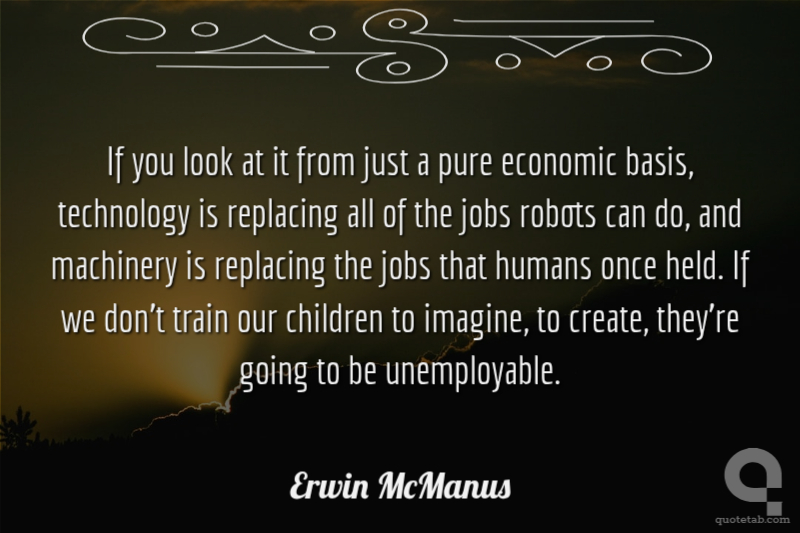If you look at it from just a pure economic basis, technology is replacing all of the jobs robots can do, and machinery is replacing the jobs that humans once held. If we don't train our children to imagine, to create, they're going to be unemployable.