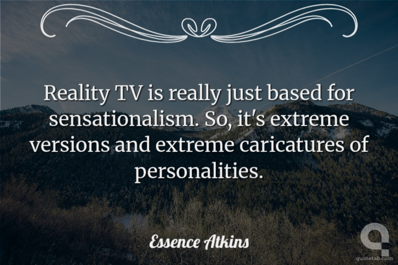 Reality TV is really just based for sensationalism. So, it's extreme versions and extreme caricatures of personalities.