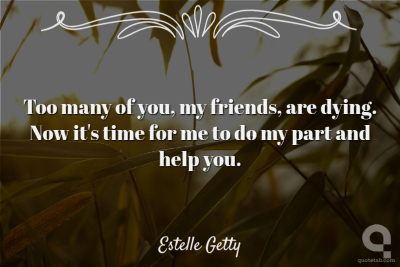 Too many of you, my friends, are dying. Now it's time for me to do my part and help you.
