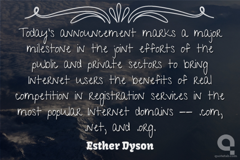 Today's announcement marks a major milestone in the joint efforts of the public and private sectors to bring Internet users the benefits of real competition in registration services in the most popular Internet domains -- .com, .net, and .org.