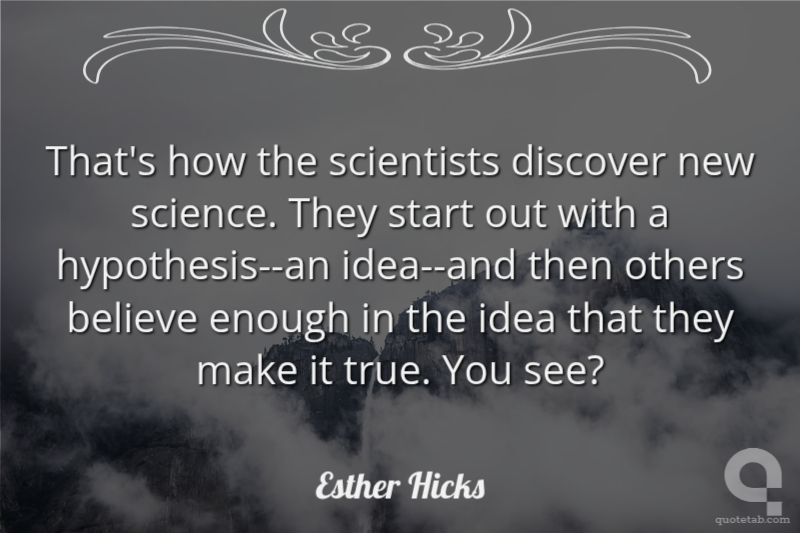 That's how the scientists discover new science. They start out with a hypothesis--an idea--and then others believe enough in the idea that they make it true. You see?
