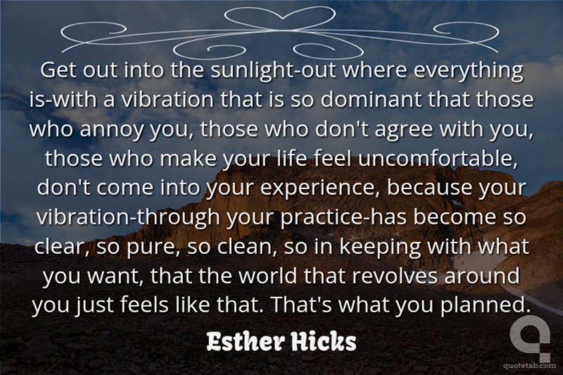 Get out into the sunlight-out where everything is-with a vibration that is so dominant that those who annoy you, those who don't agree with you, those who make your life feel uncomfortable, don't come into your experience, because your vibration-through your practice-has become so clear, so pure, so clean, so in keeping with what you want, that the world that revolves around you just feels like that. That's what you planned.