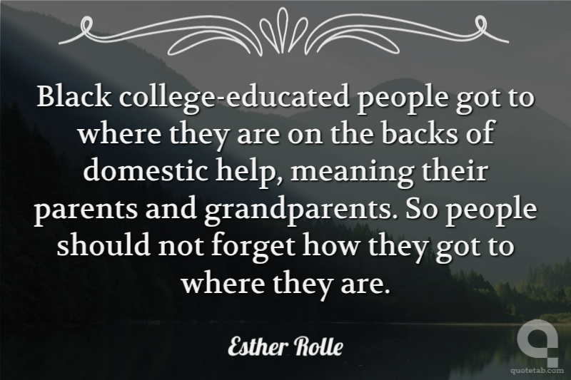 Black college-educated people got to where they are on the backs of domestic help, meaning their parents and grandparents. So people should not forget how they got to where they are.