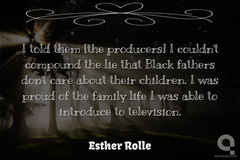 I told them [the producers] I couldn't compound the lie that Black fathers don't care about their children. I was proud of the family life I was able to introduce to television.