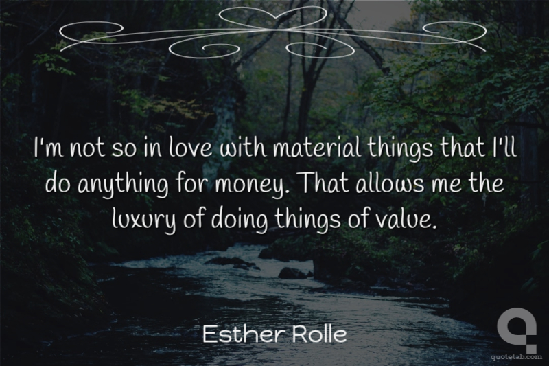 I'm not so in love with material things that I'll do anything for money. That allows me the luxury of doing things of value.