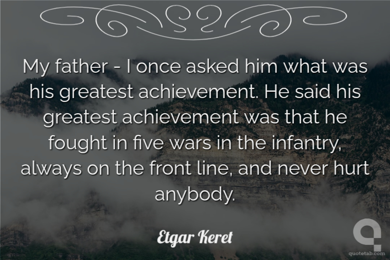 My father - I once asked him what was his greatest achievement. He said his greatest achievement was that he fought in five wars in the infantry, always on the front line, and never hurt anybody.