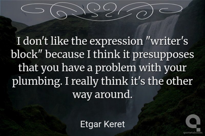 I don't like the expression "writer's block" because I think it presupposes that you have a problem with your plumbing. I really think it's the other way around.