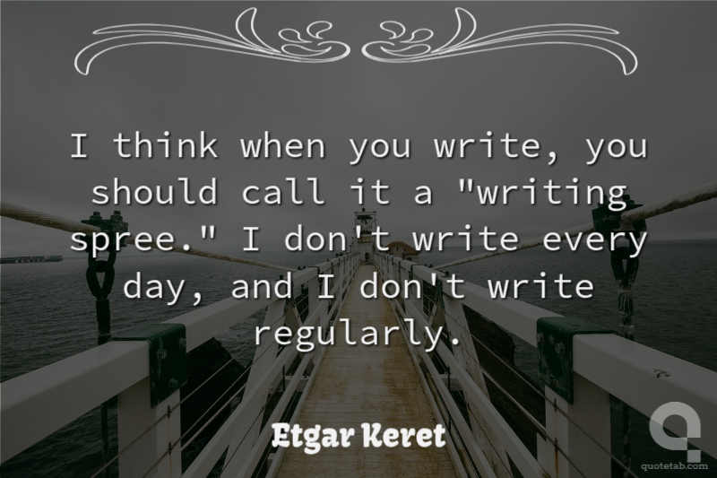 I think when you write, you should call it a "writing spree." I don't write every day, and I don't write regularly.
