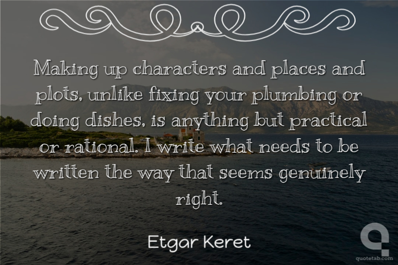 Making up characters and places and plots, unlike fixing your plumbing or doing dishes, is anything but practical or rational. I write what needs to be written the way that seems genuinely right.