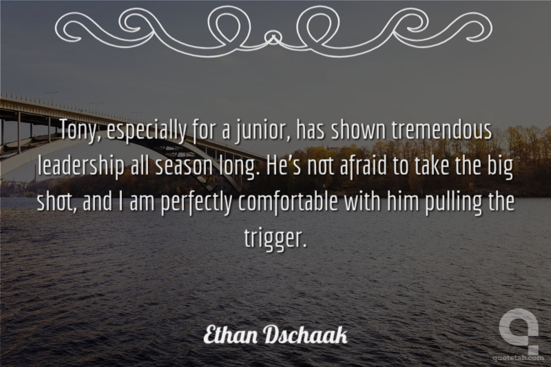 Tony, especially for a junior, has shown tremendous leadership all season long. He's not afraid to take the big shot, and I am perfectly comfortable with him pulling the trigger.