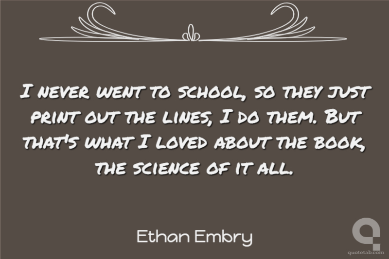 I never went to school, so they just print out the lines, I do them. But that's what I loved about the book, the science of it all.
