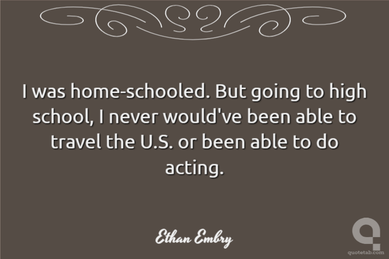 I was home-schooled. But going to high school, I never would've been able to travel the U.S. or been able to do acting.