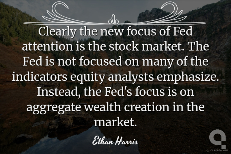 Clearly the new focus of Fed attention is the stock market, ... The Fed is not focused on many of the indicators equity analysts emphasize. Instead, the Fed's focus is on aggregate wealth creation in the market.