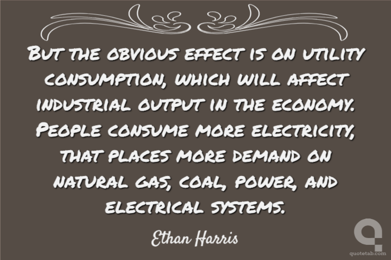 But the obvious effect is on utility consumption, which will affect industrial output in the economy. People consume more electricity, that places more demand on natural gas, coal, power, and electrical systems.