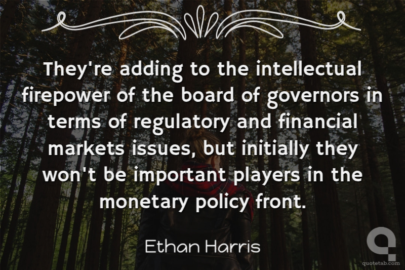 They're adding to the intellectual firepower of the board of governors in terms of regulatory and financial markets issues, but initially they won't be important players in the monetary policy front.