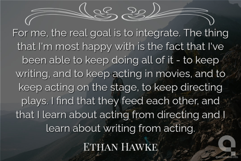 For me, the real goal is to integrate. The thing that I'm most happy with is the fact that I've been able to keep doing all of it - to keep writing, and to keep acting in movies, and to keep acting on the stage, to keep directing plays. I find that they feed each other, and that I learn about acting from directing and I learn about writing from acting.