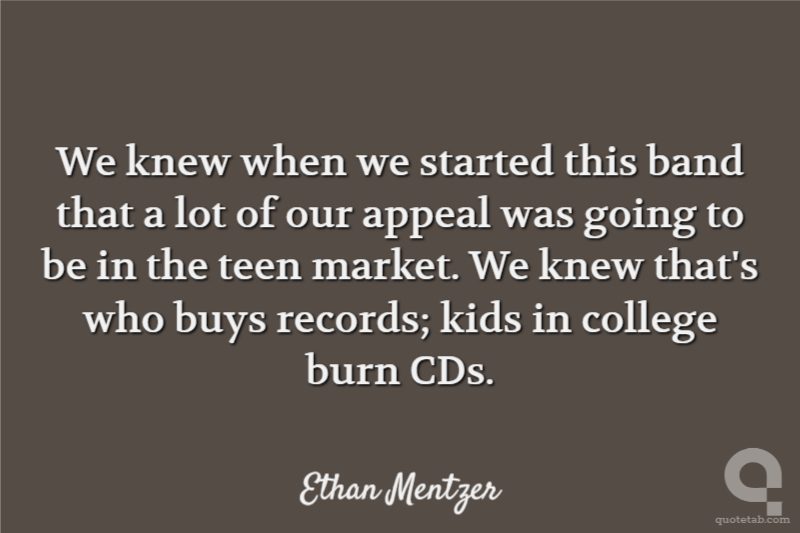 We knew when we started this band that a lot of our appeal was going to be in the teen market. We knew that's who buys records; kids in college burn CDs.