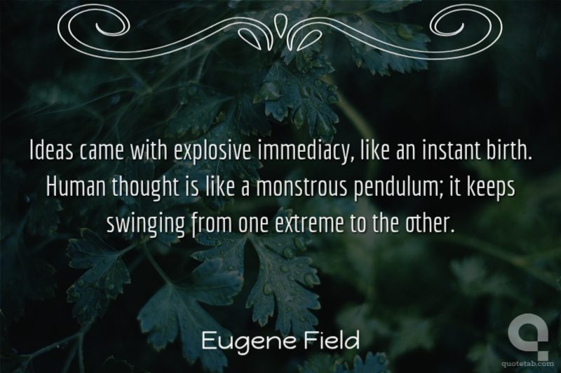 Ideas came with explosive immediacy, like an instant birth. Human thought is like a monstrous pendulum; it keeps swinging from one extreme to the other.
