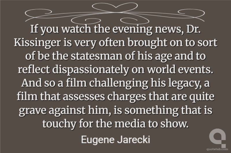 If you watch the evening news, Dr. Kissinger is very often brought on to sort of be the statesman of his age and to reflect dispassionately on world events. And so a film challenging his legacy, a film that assesses charges that are quite grave against him, is something that is touchy for the media to show.