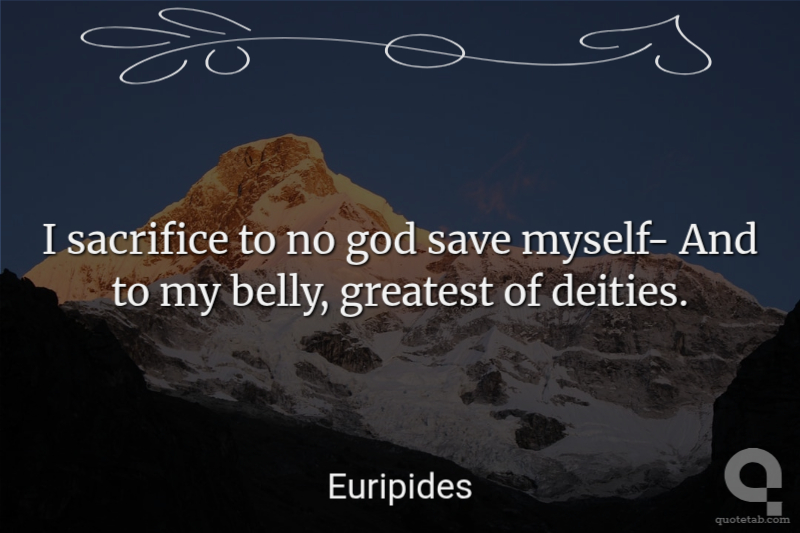 I sacrifice to no god save myself- And to my belly, greatest of deities.