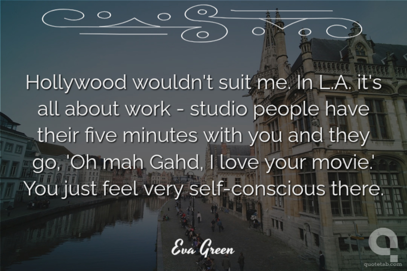 Hollywood wouldn't suit me. In L.A. it's all about work - studio people have their five minutes with you and they go, 'Oh mah Gahd, I love your movie.' You just feel very self-conscious there.