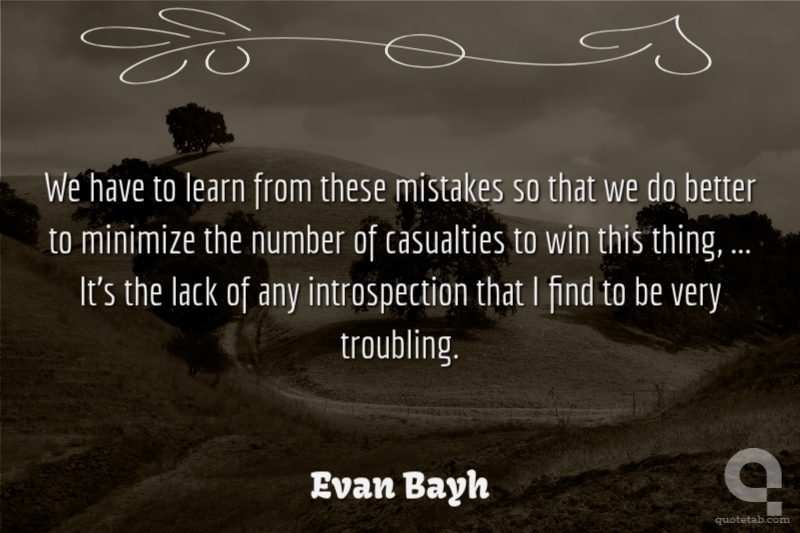 We have to learn from these mistakes so that we do better to minimize the number of casualties to win this thing, ... It's the lack of any introspection that I find to be very troubling.