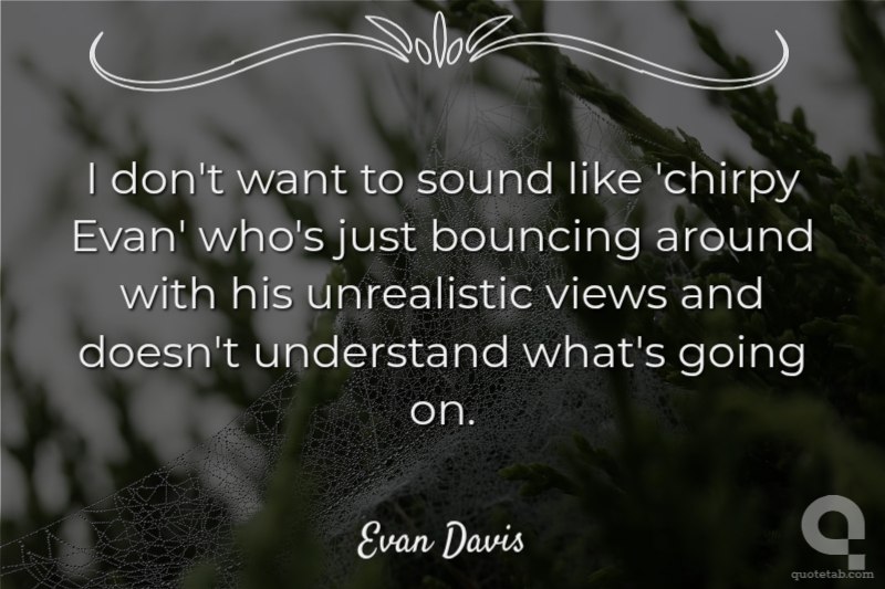 I don't want to sound like 'chirpy Evan' who's just bouncing around with his unrealistic views and doesn't understand what's going on.