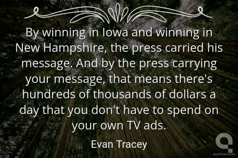 By winning in Iowa and winning in New Hampshire, the press carried his message. And by the press carrying your message, that means there's hundreds of thousands of dollars a day that you don't have to spend on your own TV ads.