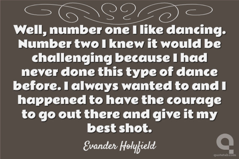 Well, number one I like dancing. Number two I knew it would be challenging because I had never done this type of dance before. I always wanted to and I happened to have the courage to go out there and give it my best shot.