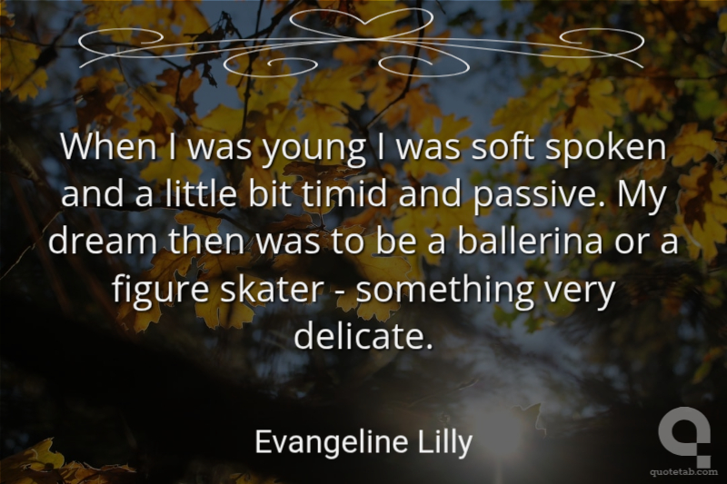 When I was young I was soft spoken and a little bit timid and passive. My dream then was to be a ballerina or a figure skater - something very delicate.