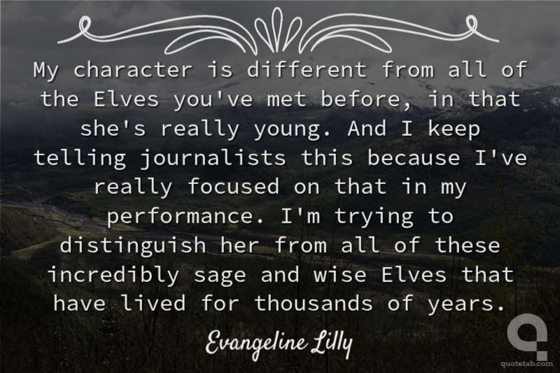 My character is different from all of the Elves you've met before, in that she's really young. And I keep telling journalists this because I've really focused on that in my performance. I'm trying to distinguish her from all of these incredibly sage and wise Elves that have lived for thousands of years.