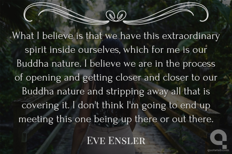 What I believe is that we have this extraordinary spirit inside ourselves, which for me is our Buddha nature. I believe we are in the process of opening and getting closer and closer to our Buddha nature and stripping away all that is covering it. I don't think I'm going to end up meeting this one being up there or out there.