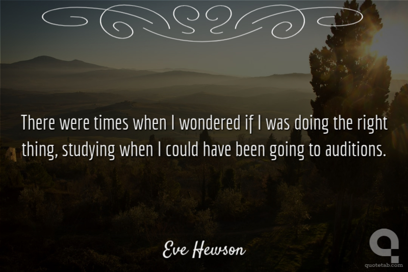 There were times when I wondered if I was doing the right thing, studying when I could have been going to auditions.