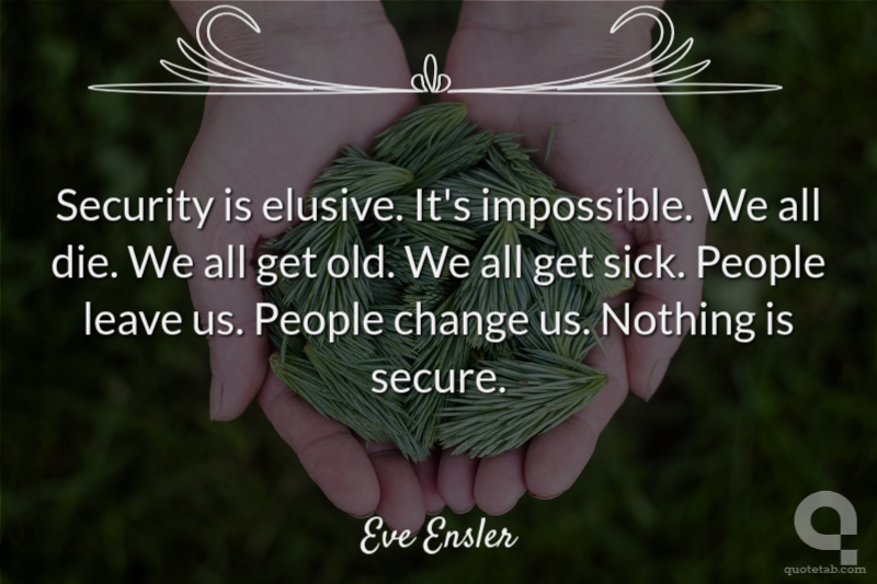 Security is elusive. It's impossible. We all die. We all get old. We all get sick. People leave us. People change us. Nothing is secure.