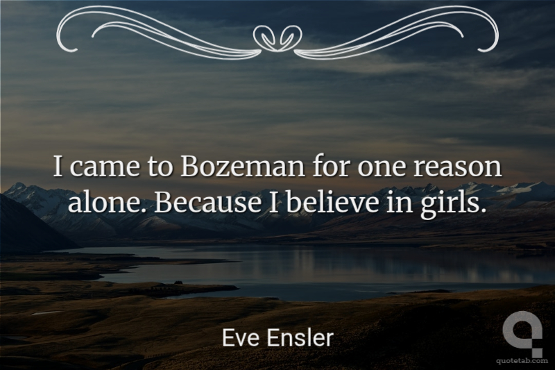 I came to Bozeman for one reason alone. Because I believe in girls.