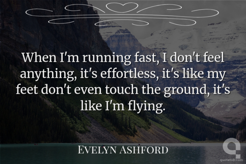 When I'm running fast, I don't feel anything, it's effortless, it's like my feet don't even touch the ground, it's like I'm flying.