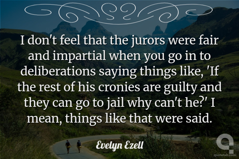 I don't feel that the jurors were fair and impartial when you go in to deliberations saying things like, 'If the rest of his cronies are guilty and they can go to jail why can't he?' I mean, things like that were said.
