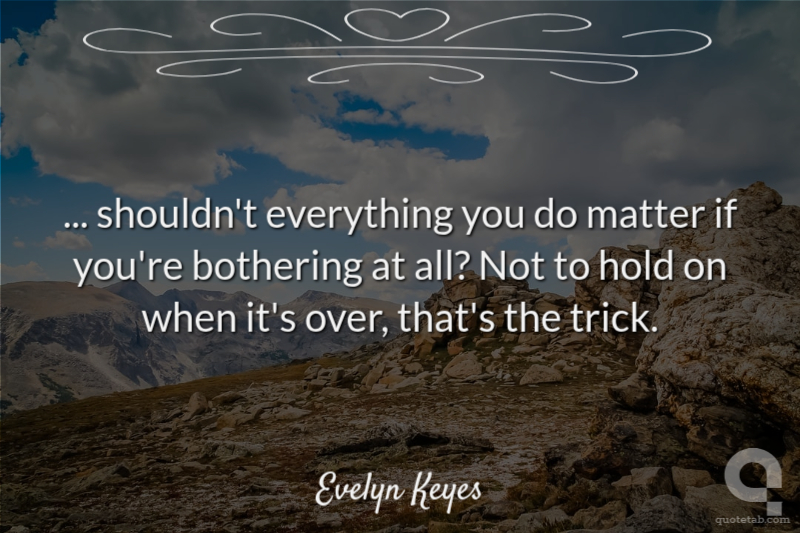 ... shouldn't everything you do matter if you're bothering at all? Not to hold on when it's over, that's the trick.