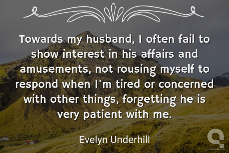 Towards my husband, I often fail to show interest in his affairs and amusements, not rousing myself to respond when I'm tired or concerned with other things, forgetting he is very patient with me.