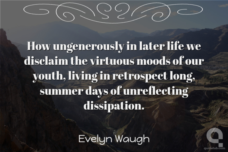How ungenerously in later life we disclaim the virtuous moods of our youth, living in retrospect long, summer days of unreflecting dissipation.