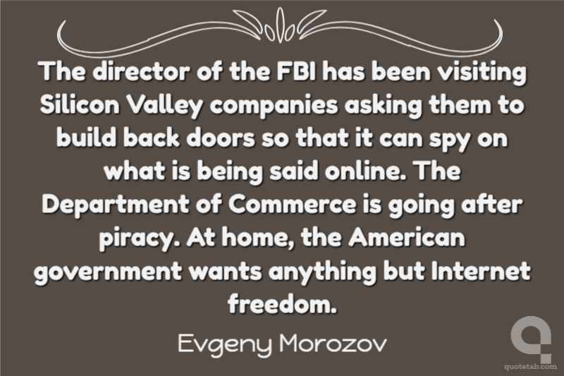 The director of the FBI has been visiting Silicon Valley companies asking them to build back doors so that it can spy on what is being said online. The Department of Commerce is going after piracy. At home, the American government wants anything but Internet freedom.