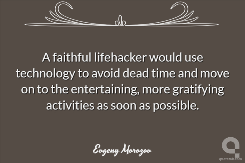 A faithful lifehacker would use technology to avoid dead time and move on to the entertaining, more gratifying activities as soon as possible.