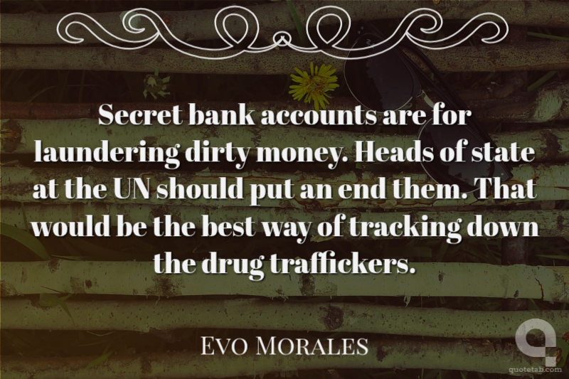 Secret bank accounts are for laundering dirty money. Heads of state at the UN should put an end them. That would be the best way of tracking down the drug traffickers.