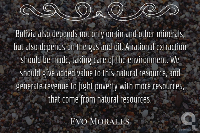 Bolivia also depends not only on tin and other minerals, but also depends on the gas and oil. A rational extraction should be made, taking care of the environment. We should give added value to this natural resource, and generate revenue to fight poverty with more resources, that come from natural resources.